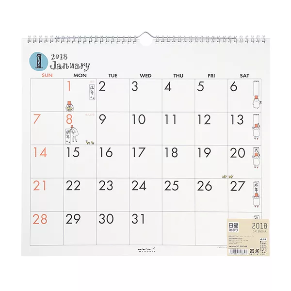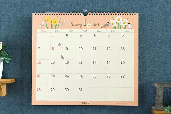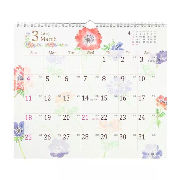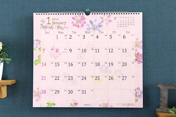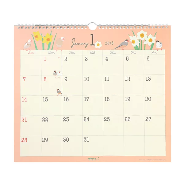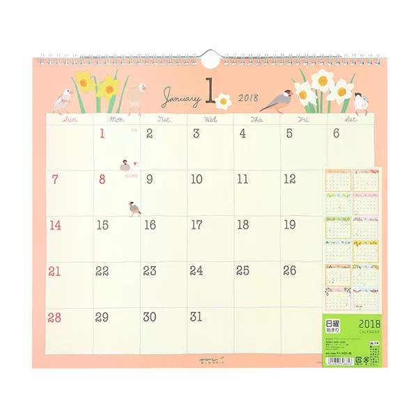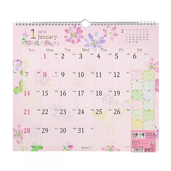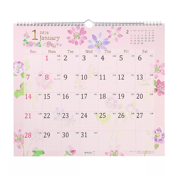 MIDORI 2018壁掛式月曆(L),大型方格讓您盡情寫下每天的計劃! MIDORI 2018壁掛式月曆(L)-鄉村花漾